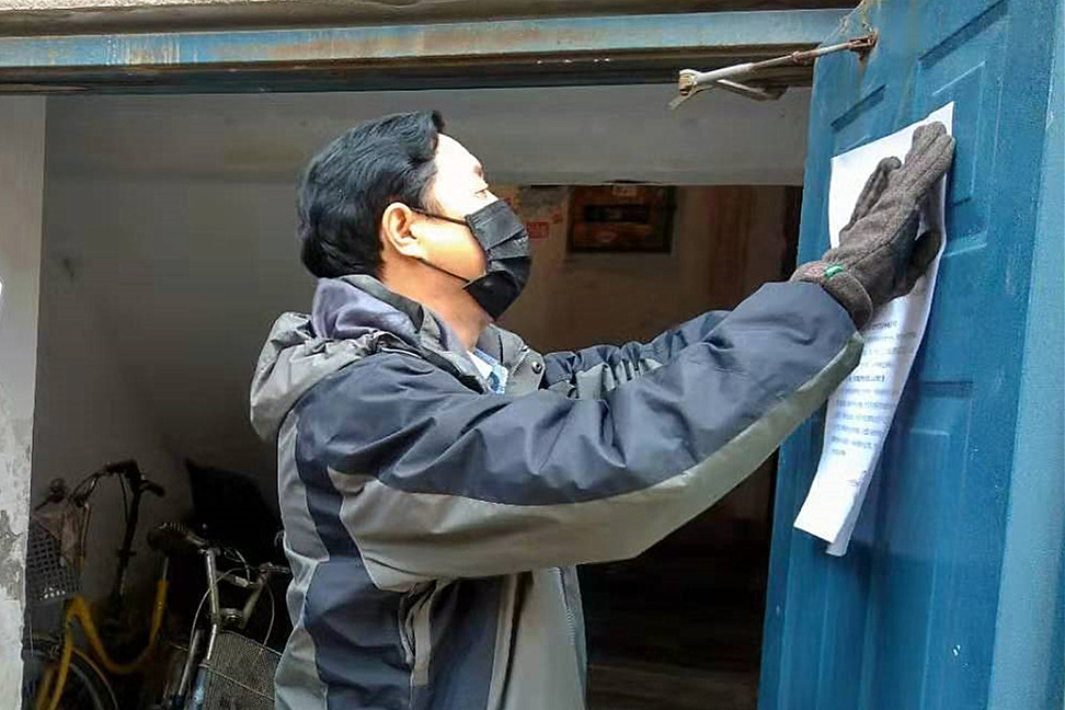 ??? 逐戶排查登記,把《關于做好新型冠狀病毒感染的肺炎疫情防控工作的緊急通知》送到居住在院內的150多戶家中;逐戶摸排登記發熱、湖北返回、密切接觸感染者等3類人員。對當前疫情防控進行宣傳,堅信黨的領導,不聽謠、不信謠、不傳謠,引導職工眾志成城,抗擊疫情。