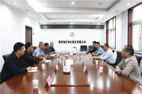 ? ? 9月25日下午,陜西地礦第三地質隊有限公司黨委書記、執行董事、總經理李煥林,副總經理賀永平、李亞成,紀委書記李軍政,總會計師、辦公室主任史小軍一行,來物化探隊有限公司調研交流工作。公司領導班子成員及相關部門負責人與李煥林一行進行了親切座談。