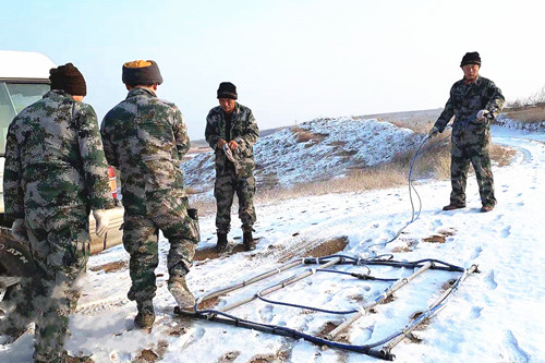 ? ? 正值寒冷季節(jié),工區(qū)最低溫度-28℃,在做好疫情防控的前提下,物化探隊工程物探勘查院技術人員不畏寒冷,艱苦奮斗,依然堅守工作崗位,嚴格按照相關技術要求,認真開展野外勘查工作,詮釋了共產(chǎn)黨員的高尚情操。