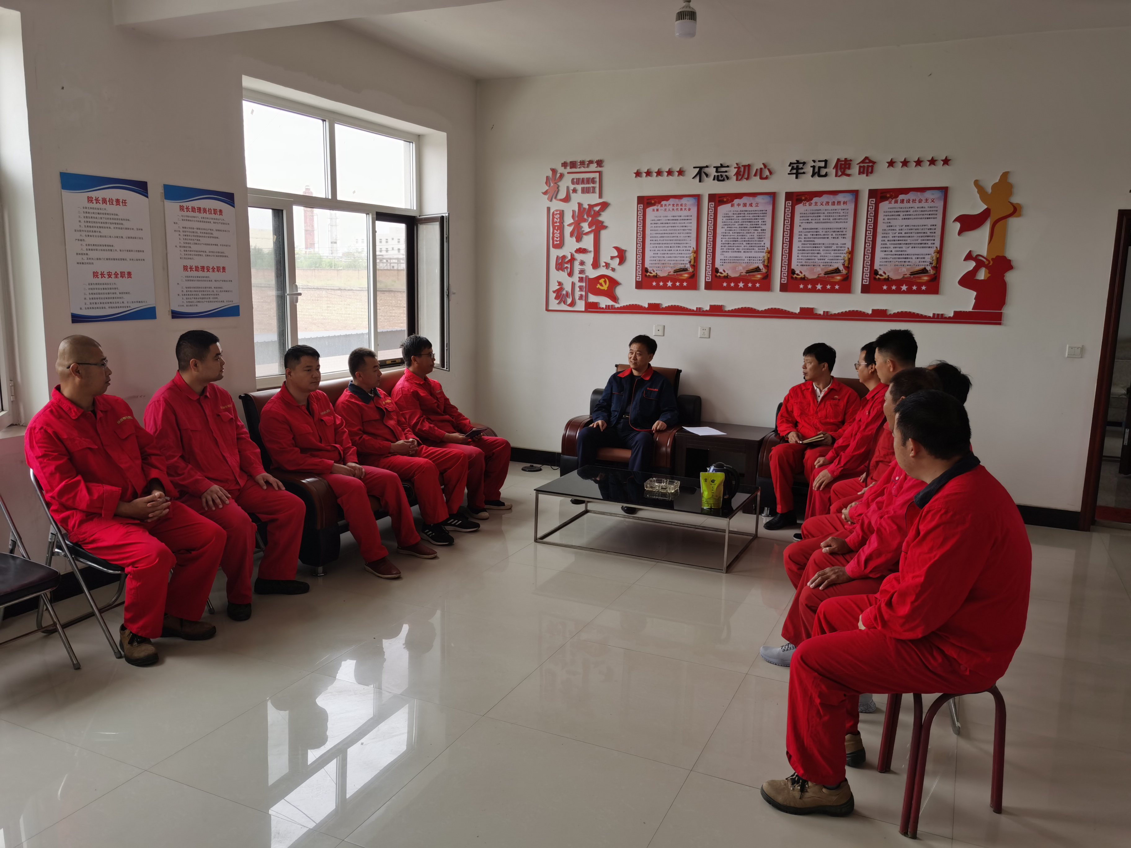 ? ? 7月21日陜西地礦物化探隊有限公司副總經理余常忠同志深入物探測井勘查院項目部慰問奮戰在一線的職工,并進行黨史學習教育專題宣講。