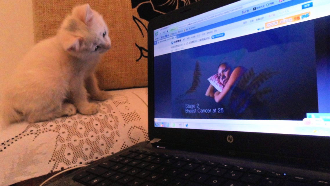 ? ? 去年臨近中秋的時候,去超市回來的路上過一丁字路口的時候,一只看上去不到一個月的小貓,差點被走在前面的人踩著,她走的搖搖晃晃,一跛一跛的,走的很蝸牛。走近一看,身體瘦瘦的,像是幾天沒吃東西,一只爪子像是被人踩過,腿也受了傷,一身白毛臟臟的,但生的很可愛,不知為什么卻過著流浪的日子,頓生憐憫之心。我跟小耳朵說,貓是我們人類的好朋友,看她現在的樣子,真是太可憐了。心想,把她抱回家喂養一段時間,長大一點再放到我們住的小區里,自己也就會覓食吃了,院子里那些其它貓貓們就不會欺負她、嫌棄她三毛了,以后也就能遇到她的駙馬爺了,哈哈…