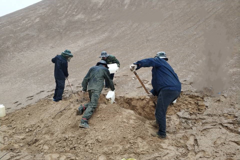 ? ? 該項目工區位于青海格爾木市無人區,山高坡陡,交通不便,平均海拔3500米,空氣稀薄,長年干旱少雨,是典型的內陸沙漠型氣候。生產生活用水要從外面運進來,設備更是必須肩扛手抬,加上夏日紫外線強烈,隊員們個個面龐黝黑蒼老,然而他們大多都是80后,甚至是90后的年輕人。