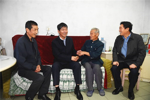 ? ? 趙書記一行首先來到物化探隊隊部,看望慰問了復(fù)轉(zhuǎn)軍人許朝陽和他的家人。他了解到許朝陽同志自1989年轉(zhuǎn)業(yè)到物化探隊工作至今,工作生活穩(wěn)定,女兒已上大學,由衷地感到欣慰。當?shù)弥S朝陽同志年逾八旬的老父親也是復(fù)轉(zhuǎn)軍人時,他高興地拉著老人的手噓寒問暖,“好呀,我今天看望慰問你們兩代軍人、兩代地質(zhì)人?!辈⑺蜕衔繂柦稹M瑫r面對面地宣傳復(fù)轉(zhuǎn)軍人優(yōu)撫政策,聽取他們的意見和建議。